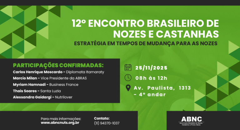 A ABNC realizará no dia 25 de novembro, em São Paulo, o 12º Encontro Brasileiro de Nozes e Castanhas. O evento marcará mais uma edição