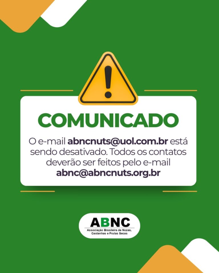 Atenção! O e-mail abncnuts@uol.com.br está sendo desativado. A partir de agora, todos os contatos devem ser feitos pelo novo endereço: abnc@abncnuts.org.br Telefone para contato: (11)